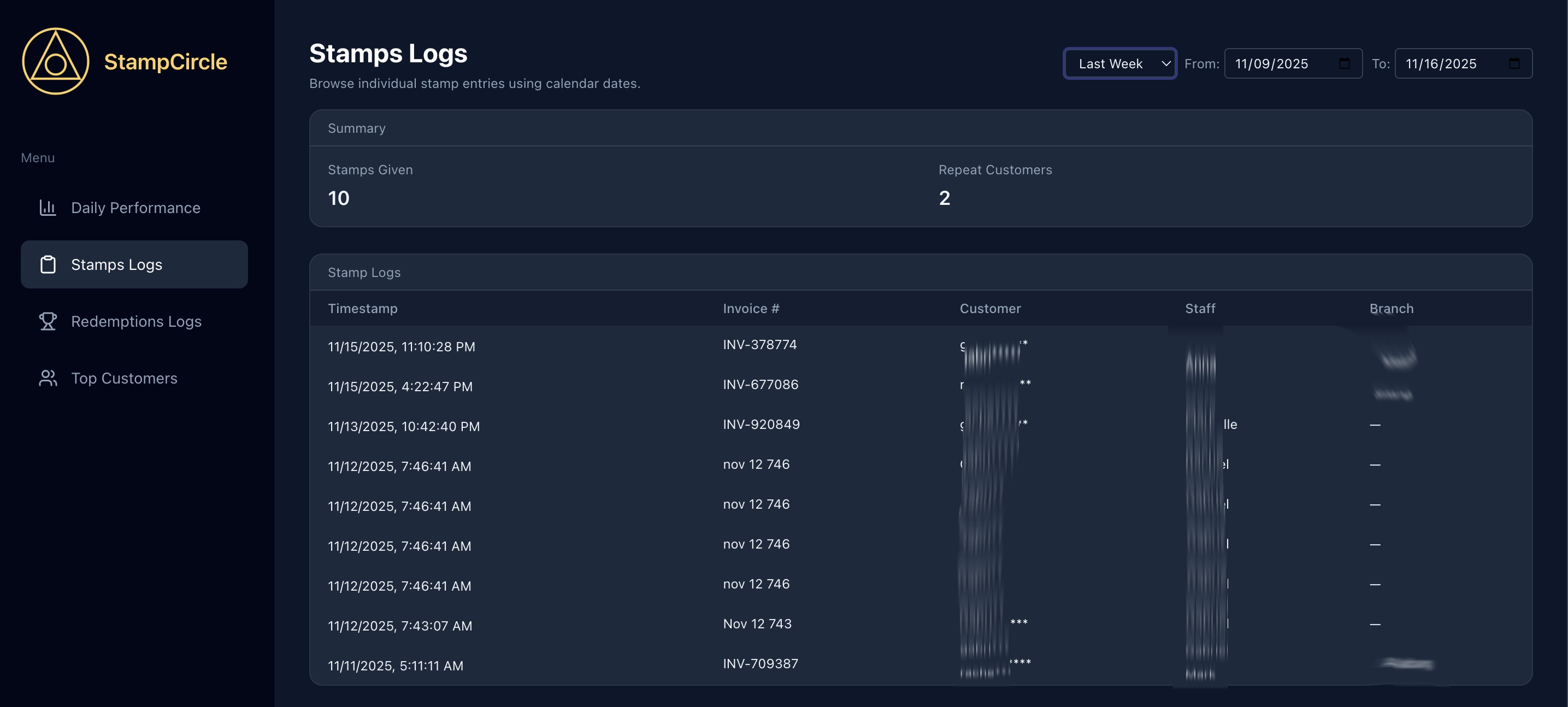 Keep an eye on how many stamps your staff are issuing throughout the day so you can identify busy periods and ensure rewards are being applied correctly.
